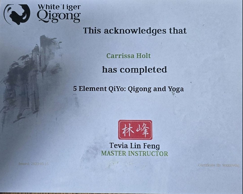 Here is a copy of my 300 hour Yoga Teaching Certification.